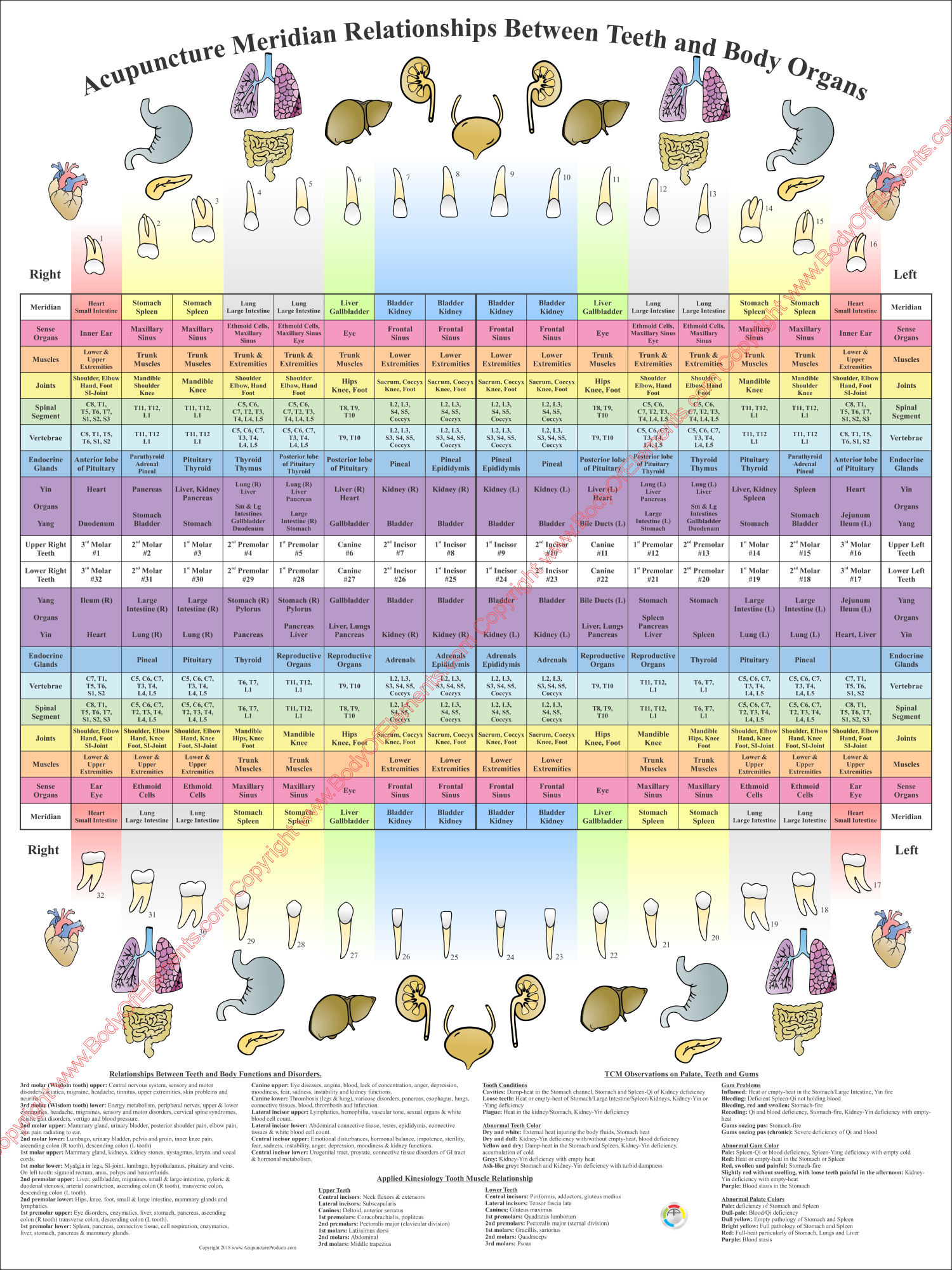 Acupuncture Meridian Relationships Between Teeth and Body Organs Poster 24″ X 36″ Dental