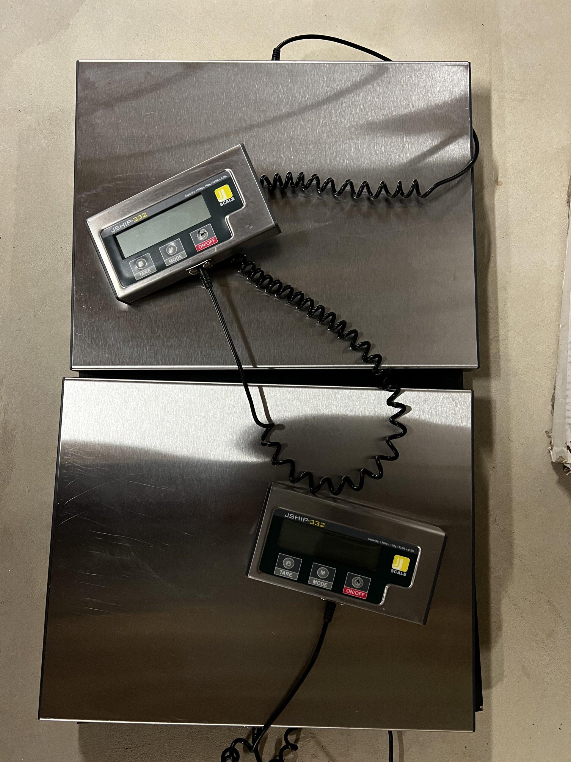 Shipping Scale. Used two at a time for patients to stand 1 foot on each scale to show off balance. Buy 1 or both. Priced per item $70 or $125 for both. AA Battery operated.